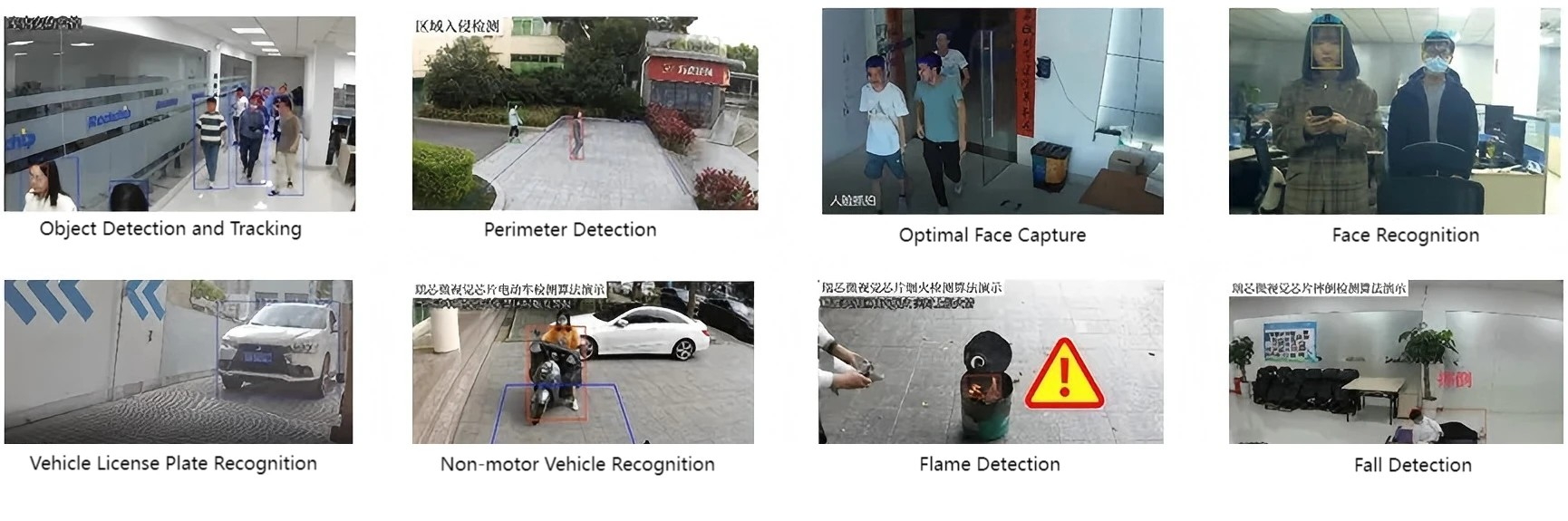 RV1126B 同步提供一整套针对 IPC(网络摄像机)应用场景设计的智能算法 SDK,涵盖人形检测、周界警戒、行为分析、目标追踪等功能,协助开发者快速部署高性能的 AI 视觉应用。