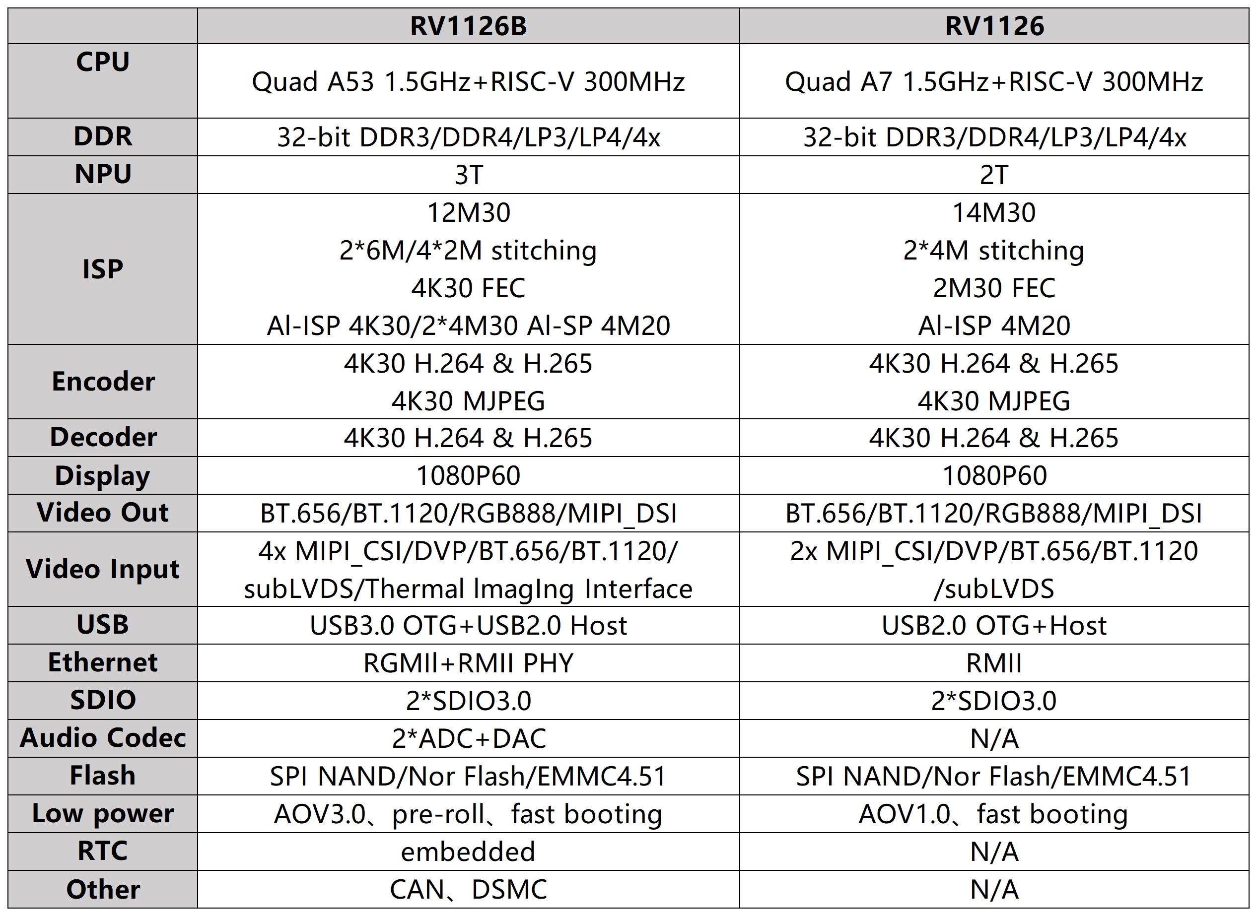 作为RV1126的升级版本RV1126B在多项关键性能指标上实现了大幅强化,无论是在运算能力、内存带宽、AI算力还是影像处理技术方面,都带来了显著突破: