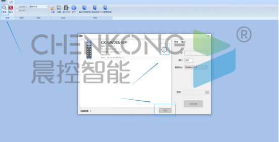 点击搜索出来的设备上的齿轮按钮,修改ip。
