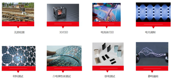 ATA-7000系列高压放大器应用场景:介电弹性体测试、EHD电流体打印、铁电测试、等离子体测试、3D打印、材料极化、静电纺丝、微流控。