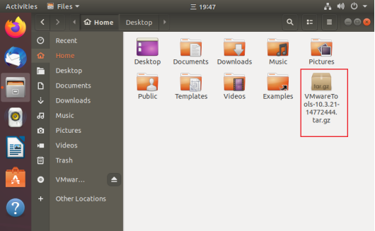 完成后进入ubuntu,桌面会出现VMware Tools的光盘图标,点击进入其中: