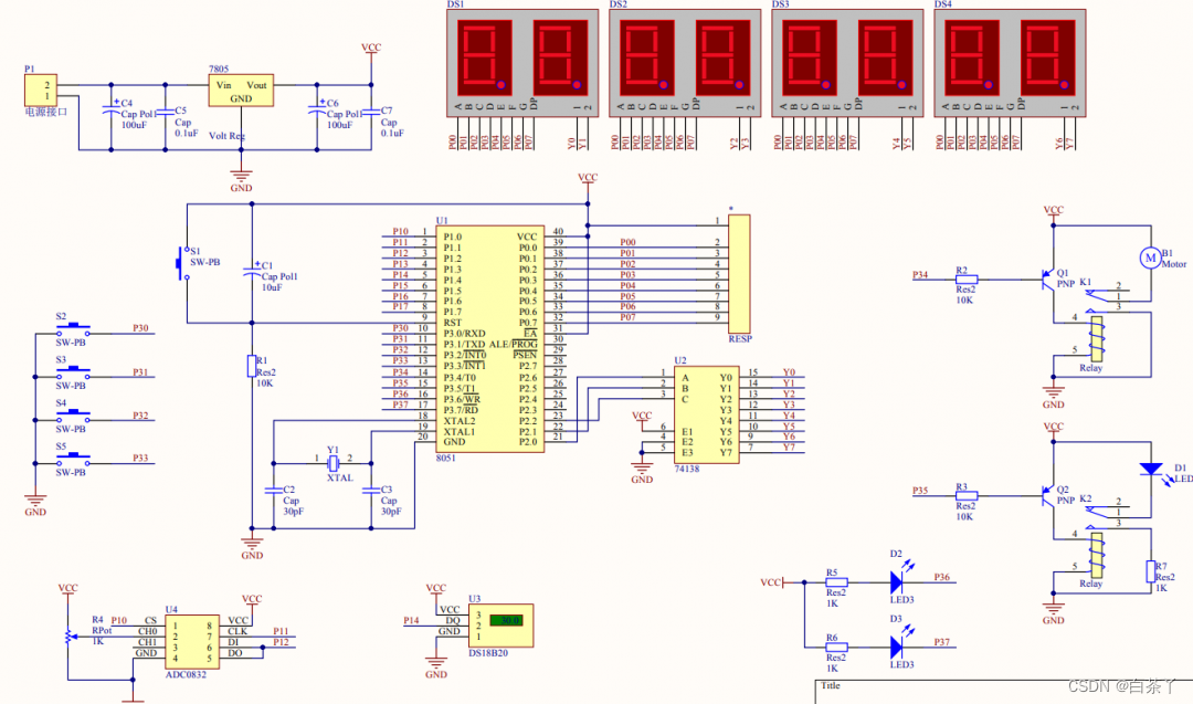 3、当温度低于设定温度时,单片机发出命令指示加热装置进行加热,直到高于设定值。