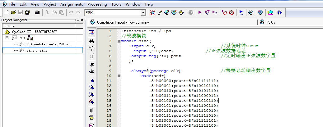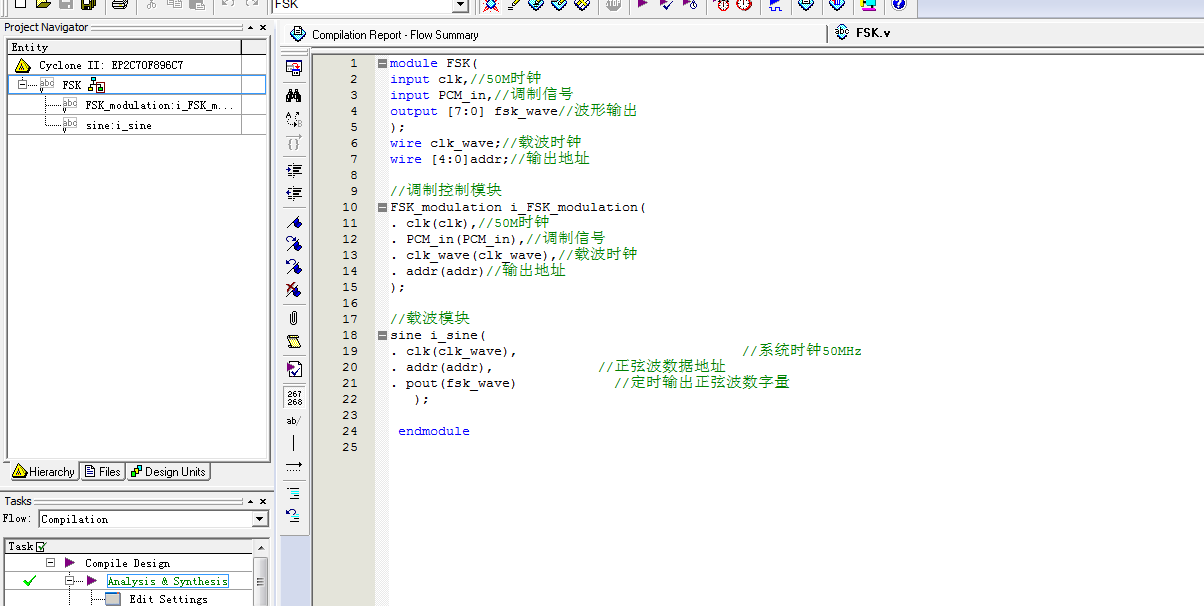 BPSK和2FSK调制设计Verilog代码Quartus仿真