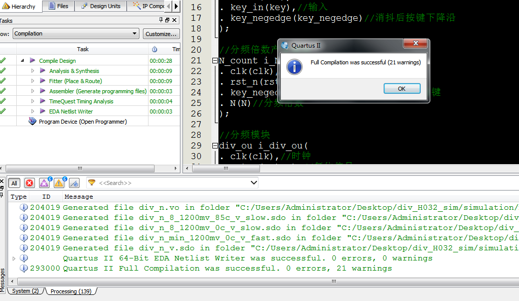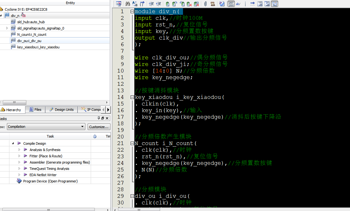 名称:可调分频器的设计Verilog代码Quartus? EP4C开发板