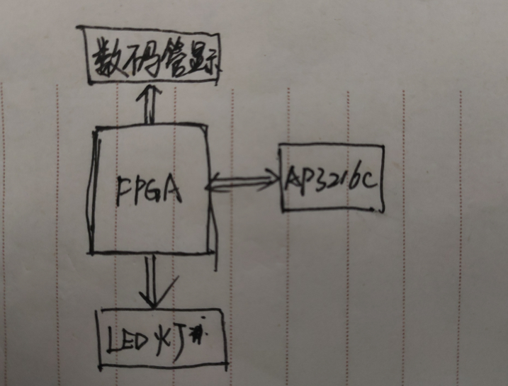 1. 设计思路:采用FPGA作为控制中心,采用环境光传感器采集当前光亮度,并将亮度数据显示在数码管,同时根据亮度控制led灯的亮度,环境越暗,led灯亮度越大,反之亦然。