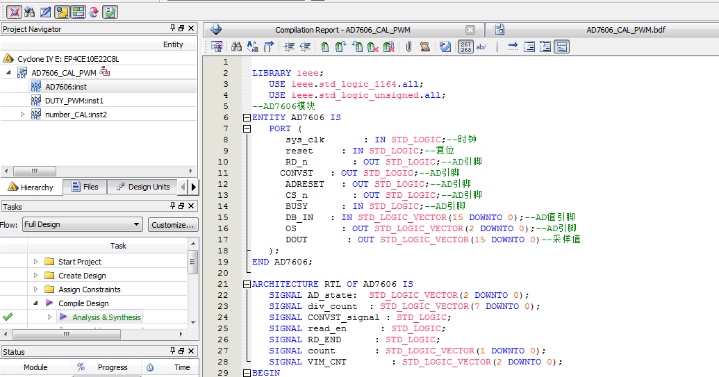 名称:AD7606驱动代码设计VHDL代码Quartus仿真
