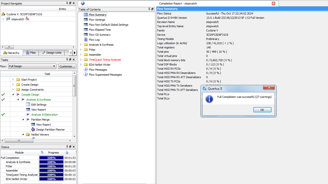 名称:秒表电路的设计Verilog代码Quartus? DE10开发板