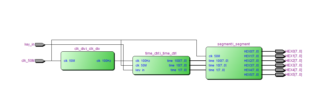 /分频模块,分频到1Hz module?clk_div( input?clk_50M, output?reg?clk_100Hz ); reg?[31:0]?div_cnt=32'd0; always@(posedge?clk_50M) if(div_cnt==32'd500000)begin//50M分频500000得到100Hz信号 div_cnt<=32'd0; clk_100Hz<=1; end else?begin div_cnt<=div_cnt+32'd1; clk_100Hz<=0; end endmodule