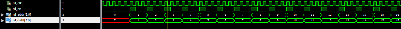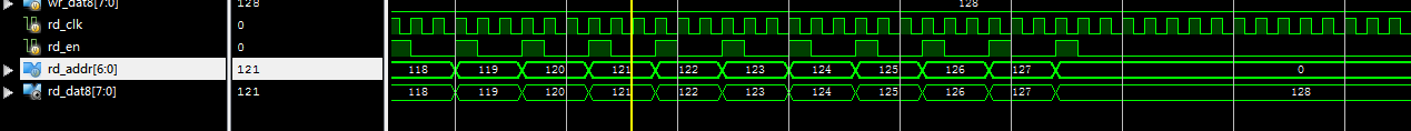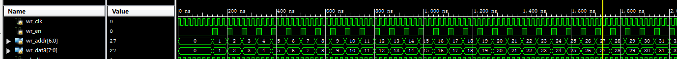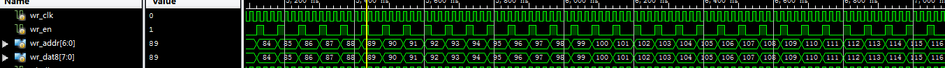 module?lab08( wr_clk,wr_en,wr_addr,wr_dat8,rd_clk,rd_en,rd_addr,rd_dat8 ????); input?wr_clk,wr_en,rd_clk,rd_en; input[7:0]?wr_dat8; input[6:0]?wr_addr,rd_addr; output[7:0]?rd_dat8; reg[7:0]?rd_dat8; reg[7:0]?ram[127:0]; always@(posedge?wr_clk) if(wr_en)