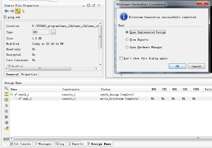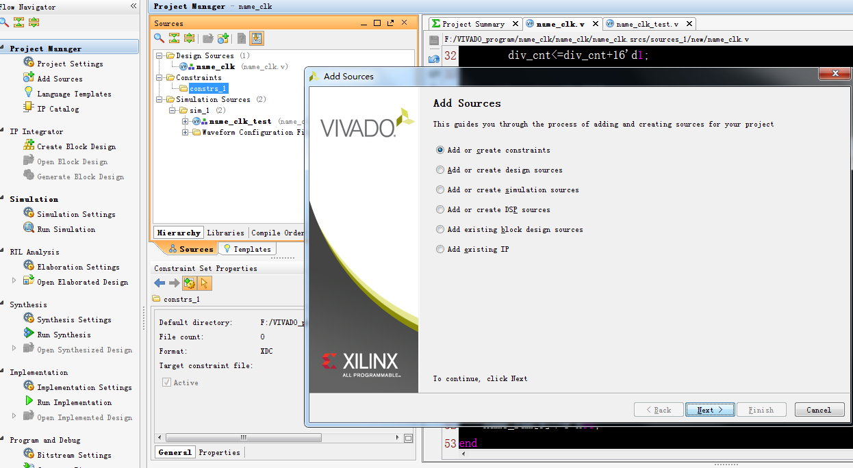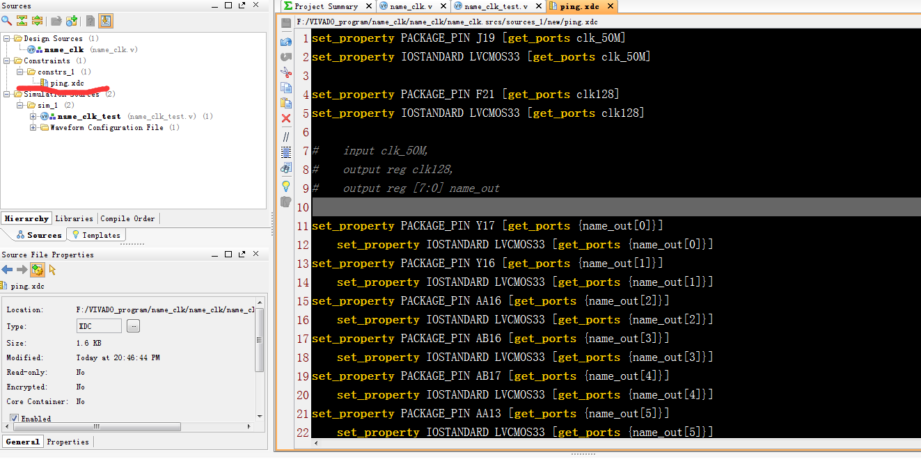 6.新建管脚定义文件如下图,文件命名为pins.xdc