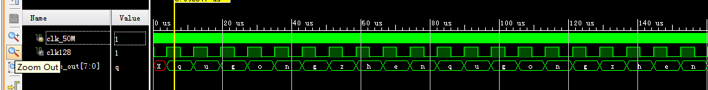 `timescale?1ns?/?1ps ////////////////////////////////////////////////////////////////////////////////// //?Company:? //?Engineer:? //? //?Create?Date:?2018/12/28?20:19:56 //?Design?Name:? //?Module?Name:?name_clk //?Project?Name:? //?Target?Devices:? //?Tool?Versions:? //?Description:? //? //?Dependencies:? //? //?Revision: //?Revision?0.01?-?File?Created //?Additional?Comments: //? ////////////////////////////////////////////////////////////////////////////////// module?name_clk( ????input?clk_50M, ????output?reg?clk128, ????output?reg?[7:0]?name_out ????); reg?[15:0]?div_cnt=16'd0; always@(posedge?clk_50M) ????if(div_cnt>=16'd390) ????????div_cnt<=16'd0; ????else ????????div_cnt<=div_cnt+16'd1; always@(posedge?clk_50M) ????if(div_cnt>=16'd195) ????????clk128<=1; ????else ????????clk128<=0; reg?[7:0]?name_ram?[0:9];//qu?gong?zhen always@(posedge?clk_50M)?begin ????name_ram[0]<=8'h71; ????name_ram[1]<=8'h75; ????name_ram[2]<=8'h67; ????name_ram[3]<=8'h6f; ????name_ram[4]<=8'h6e; ????name_ram[5]<=8'h67; ????name_ram[6]<=8'h7a; ????name_ram[7]<=8'h68; ????name_ram[8]<=8'h65; ????name_ram[9]<=8'h6e; end reg?[3:0]?address=4'd0; always@(posedge?clk128) ????if(address>=4'd9)