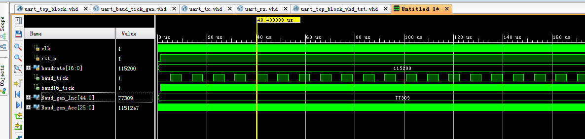 名称:参数可调的UART串口设计VHDL代码VIVADO仿真
