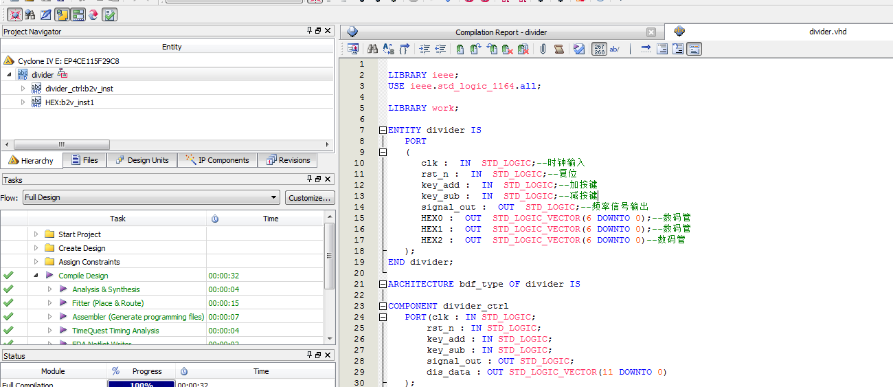 名称:分频器设计VHDL代码Quartus DE2-115开发板