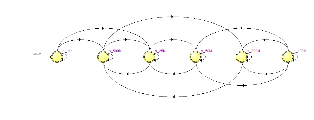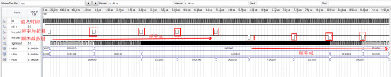 2.系统主要功能;三个按键分别控制分频器的开关和频率的增减,当开关按下时,输出频率为50MHz的方波,且频率可谓。可用增减按键控制输出频率,且由数码管显示当前输出方波频率。输出频率可调为25MHZ、50MHz、100MHZ、200MHz、500MHz