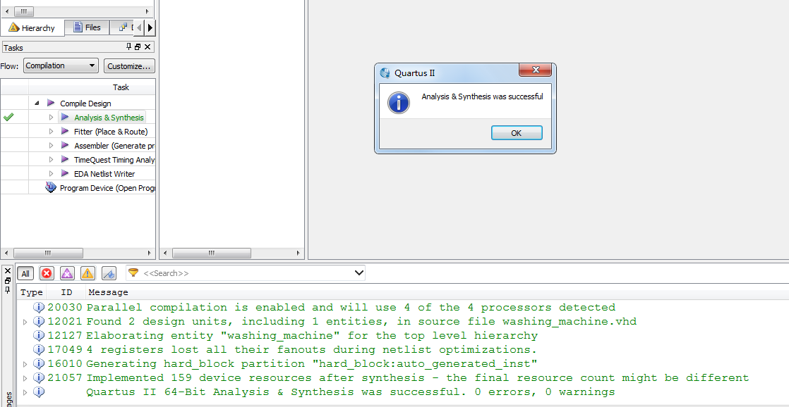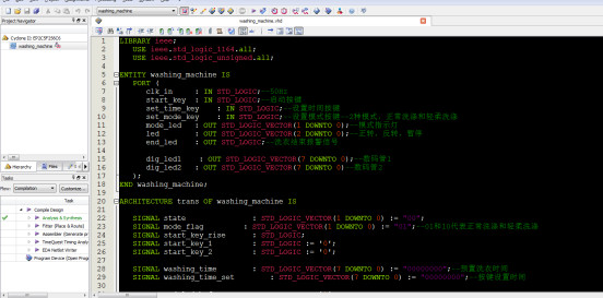 名称:2种模式洗衣机控制器设计VHDL代码Quartus仿真