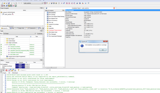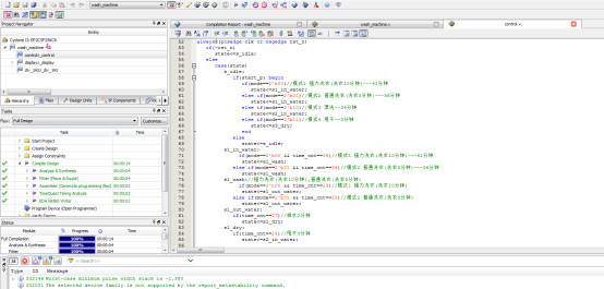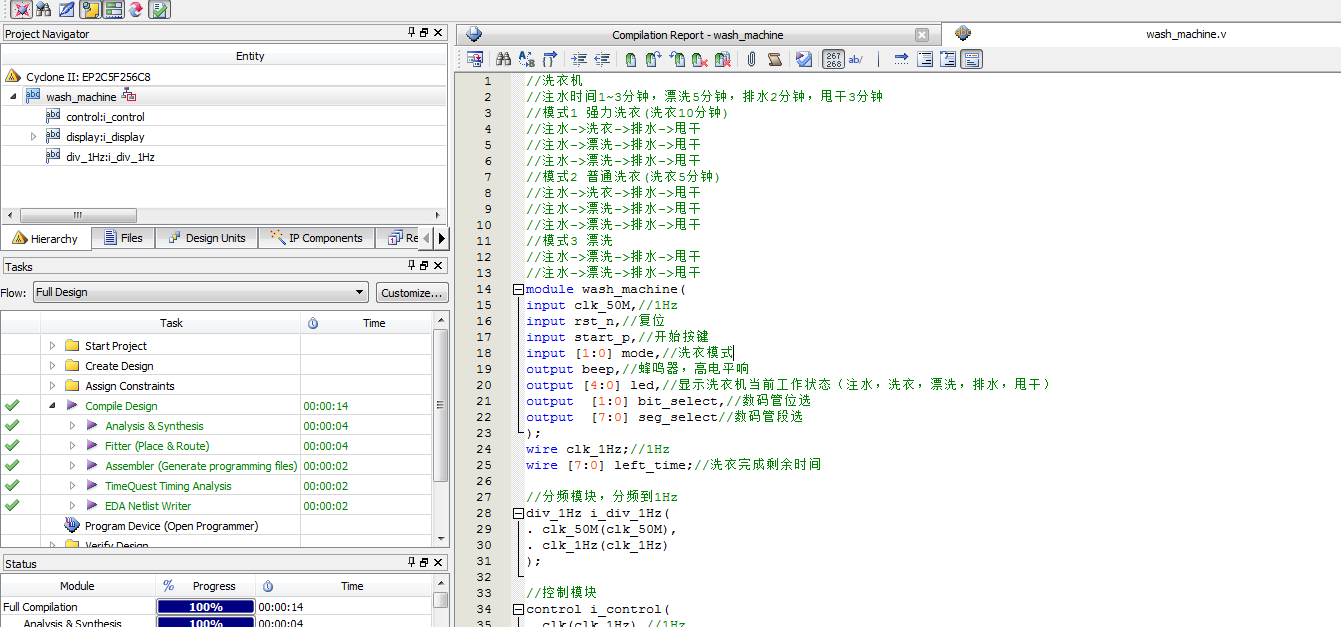 名称:智能洗衣机控制系统设计Verilog代码Quartus仿真