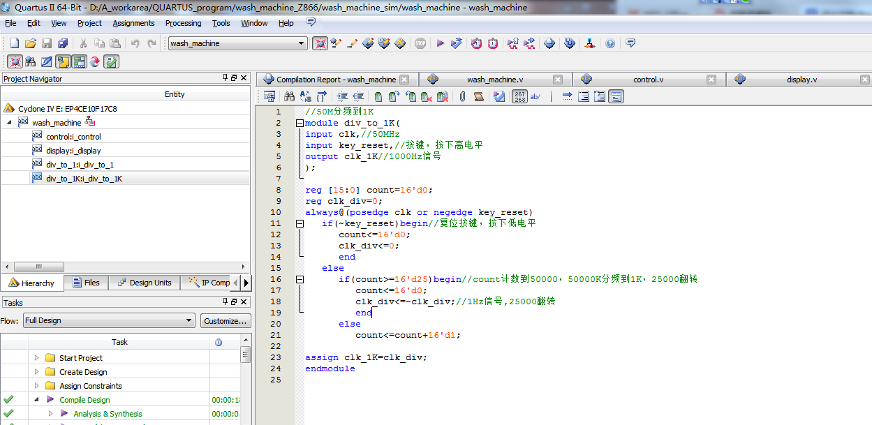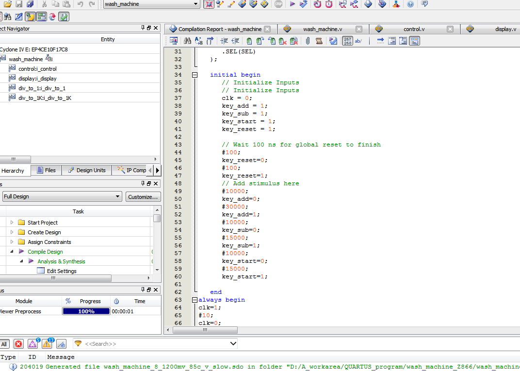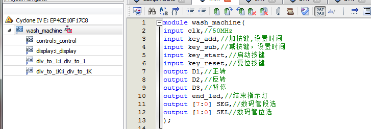 名称:基于FPGA的洗衣机控制器设计Verilog代码Quartus? 正点原子开发板