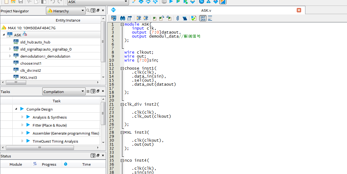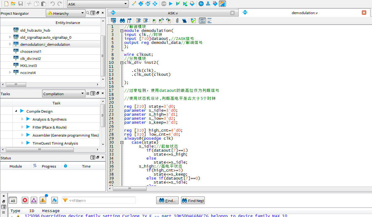 名称:基于FPGA的2ASK的解调程序verilog代码Quartus仿真