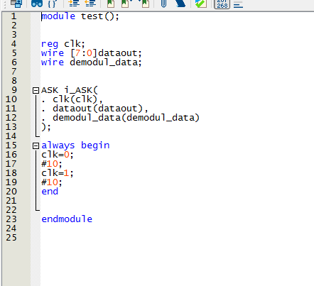 2.写以上2ASK解调程序的modelsim仿真testbench。