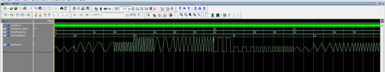 LIBRARY?ieee; ???USE?ieee.std_logic_1164.all; USE?ieee.std_logic_unsigned.all; --DDS频率等于clk*N/2^13,clk为输入时钟,N为频率控制字frequency;2^13是因为ROM里面存储了8192个点,相位累加器位宽为13位 ENTITY?DDS_top?IS ???PORT?( ??????clk_in??????:?IN?STD_LOGIC;--时钟 ??????wave_select??:?IN?STD_LOGIC_VECTOR(1?DOWNTO?0);--01输出sin,10输出方波,11输出三角波 ??????frequency????:?IN?STD_LOGIC_VECTOR(9?DOWNTO?0);--频率控制字,控制输出波形频率,值越大,频率越大 ??????amplitude????:?IN?STD_LOGIC_VECTOR(7?DOWNTO?0);--幅值控制字,值越大,幅值越大 wave?????????:?OUT?STD_LOGIC_VECTOR(15?DOWNTO?0)--输出波形 ???); END?DDS_top; ARCHITECTURE?behave?OF?DDS_top?IS --例化模块 --波形选择模块 ???COMPONENT?wave_sel?IS ??????PORT?( ?????????clk_in??????:?IN?STD_LOGIC; ?????????wave_select??:?IN?STD_LOGIC_VECTOR(1?DOWNTO?0); ?????????douta_fangbo?:?IN?STD_LOGIC_VECTOR(7?DOWNTO?0); ?????????douta_sanjiao?:?IN?STD_LOGIC_VECTOR(7?DOWNTO?0); ?????????douta_sin????:?IN?STD_LOGIC_VECTOR(7?DOWNTO?0); ?????????wave?????????:?OUT?STD_LOGIC_VECTOR(7?DOWNTO?0) ??????); ???END?COMPONENT; ??? --相位累加器模块 ???COMPONENT?Frequency_ctrl?IS ??????PORT?( ?????????clk_in??????:?IN?STD_LOGIC; ?????????frequency????:?IN?STD_LOGIC_VECTOR(9?DOWNTO?0); ?????????addra????????:?OUT?STD_LOGIC_VECTOR(12?DOWNTO?0) ??????); ???END?COMPONENT; --ROM表 COMPONENT?sin_ROM?IS PORT ( address:?IN?STD_LOGIC_VECTOR?(12?DOWNTO?0); clock:?IN?STD_LOGIC??:=?'1'; q:?OUT?STD_LOGIC_VECTOR?(7?DOWNTO?0) ); END?COMPONENT; --ROM表 COMPONENT?fangbo_ROM?IS PORT ( address:?IN?STD_LOGIC_VECTOR?(12?DOWNTO?0); clock:?IN?STD_LOGIC??:=?'1'; q:?OUT?STD_LOGIC_VECTOR?(7?DOWNTO?0) ); END?COMPONENT; --ROM表 COMPONENT?sanjiao_ROM?IS PORT ( address:?IN?STD_LOGIC_VECTOR?(12?DOWNTO?0); clock:?IN?STD_LOGIC??:=?'1'; q:?OUT?STD_LOGIC_VECTOR?(7?DOWNTO?0) ); END?COMPONENT; ??? ???SIGNAL?addra?????????:?STD_LOGIC_VECTOR(12?DOWNTO?0); ???SIGNAL?douta_fangbo??:?STD_LOGIC_VECTOR(7?DOWNTO?0); ???SIGNAL?douta_sanjiao?:?STD_LOGIC_VECTOR(7?DOWNTO?0); ???SIGNAL?douta_sin?????:?STD_LOGIC_VECTOR(7?DOWNTO?0); ???SIGNAL?wave_temp?????????:??STD_LOGIC_VECTOR(7?DOWNTO?0);--波形 BEGIN ??? ???--方波ROM,存储波形数据 ???i_fangbo_ROM?:?fangbo_ROM ??????PORT?MAP?( ?????????clock???=>?clk_in, ?????????address??=>?addra, ?????????q??=>?douta_fangbo ??????); ??? ??? ???--三角波ROM,存储波形数据 ???i_sanjiao_ROM?:?sanjiao_ROM ??????PORT?MAP?( ?????????clock???=>?clk_in, ?????????address??=>?addra, ?????????q??=>?douta_sanjiao ??????); ??? ??? ???--sin波ROM,存储波形数据 ???i_sin_ROM?:?sin_ROM ??????PORT?MAP?( ?????????clock???=>?clk_in, ?????????address??=>?addra, ?????????q??=>?douta_sin ??????); ??? ??? ???--相位累加器 ???i_Frequency_ctrl?:?Frequency_ctrl ??????PORT?MAP?( ?????????clk_in????=>?clk_in, ?????????frequency??=>?frequency,--频率控制字 ?????????addra??????=>?addra--输出地址 ??????); ??? ??? ???--波形选择控制 ???i_wave_sel?:?wave_sel ??????PORT?MAP?( ?????????clk_in????????=>?clk_in, ?????????wave_select????=>?wave_select,--01输出sin,10输出方波,11输出三角波 ?????????douta_fangbo???=>?douta_fangbo,--方波 ?????????douta_sanjiao??=>?douta_sanjiao,--三角 ?????????douta_sin??????=>?douta_sin,--正弦 ?????????wave???????????=>?wave_temp--输出波形? ??????); ??? wave<=wave_temp*amplitude;--波形乘以幅值 END?behave;