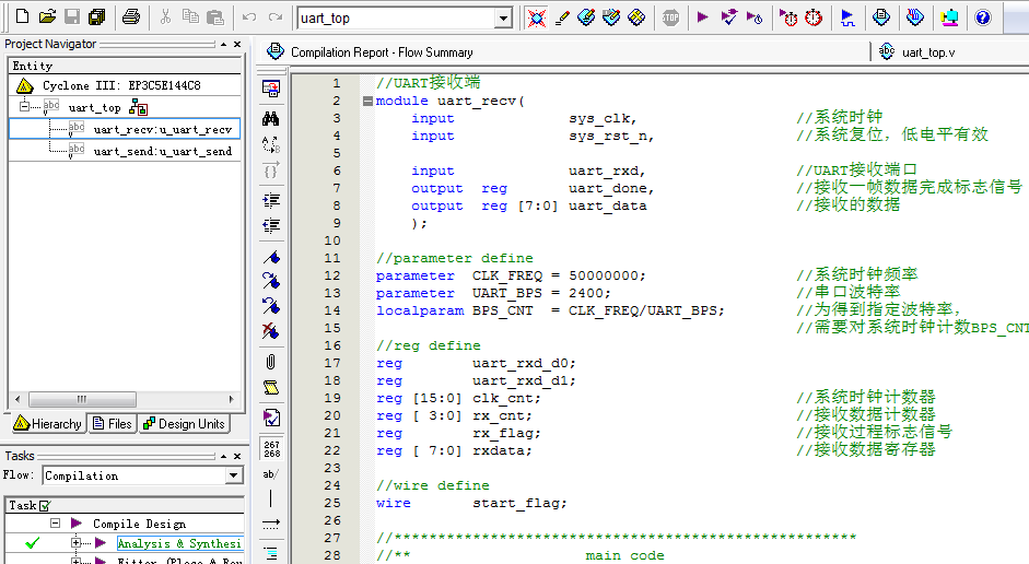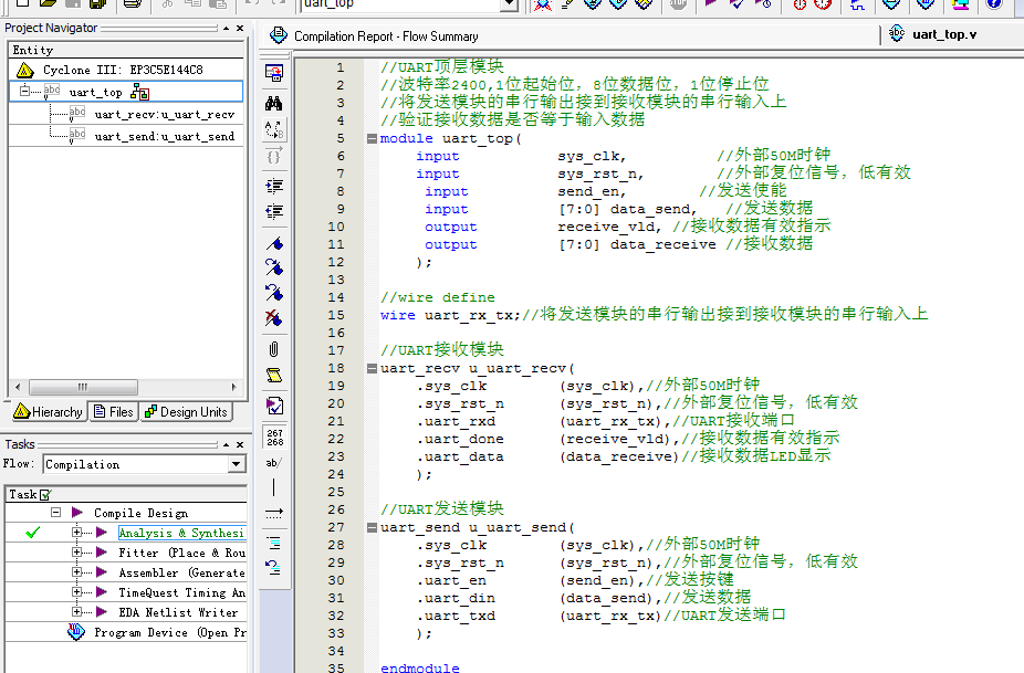 名称:UART异步串行通信协议RS232Verilog代码Quartus仿真