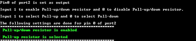 - 建议使用端口 0 和 1 作为输出,因为它们连接到 LED 和段显示器,而使用端口 2 作为输入,因为它连接到开关。