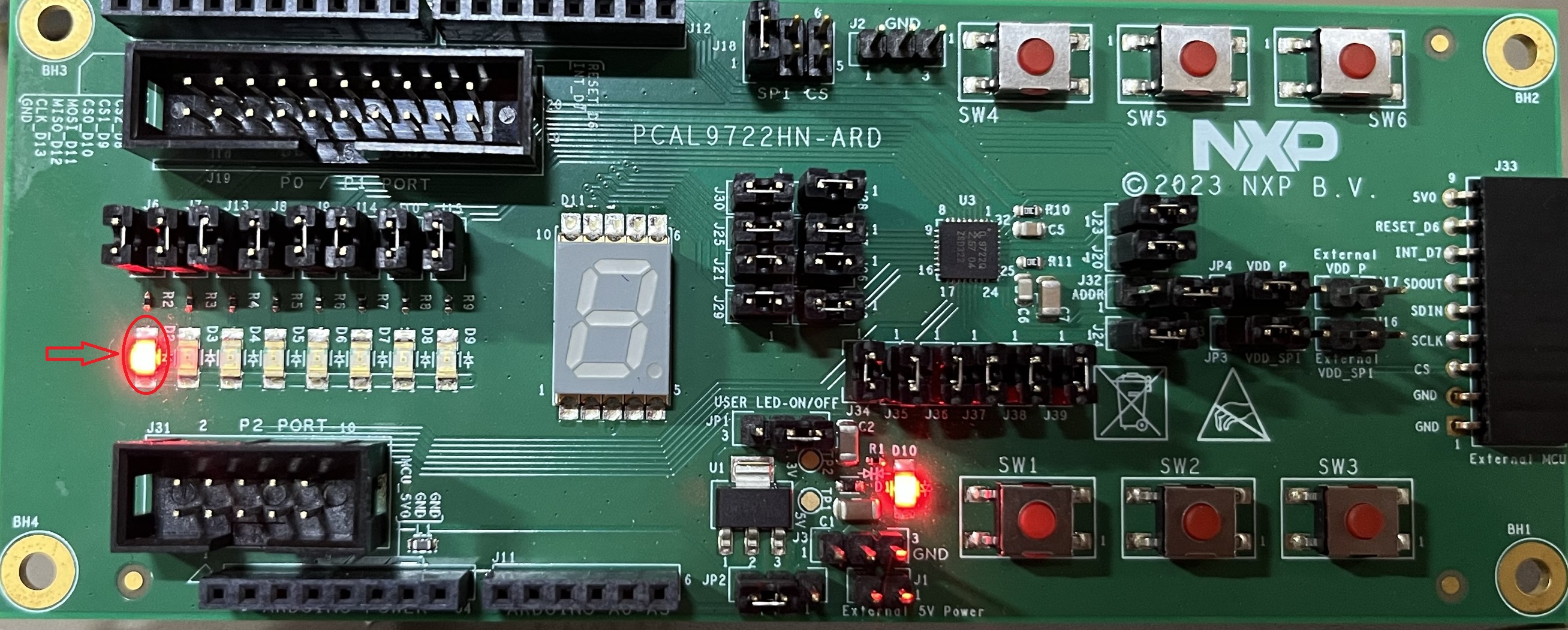 - PCAL9722HN-ARD子卡通过Arduino端口采用SPI通信协议与主机设备通信。