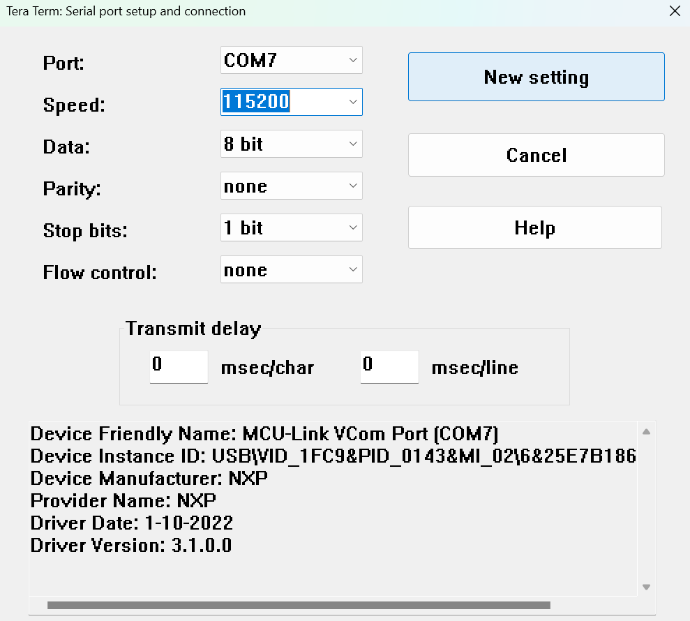 - 打开安装在 Windows PC 上的 PUTTY/Teraterm 应用程序,波特率为 115200,并按照上述步骤分配 COM 端口。