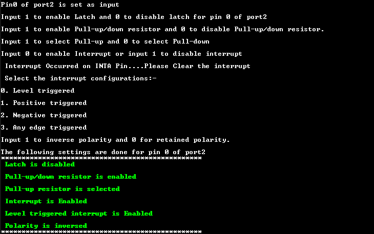 - 通过在主菜单中按#6 并选择检查中断,可以看到产生中断的引脚。