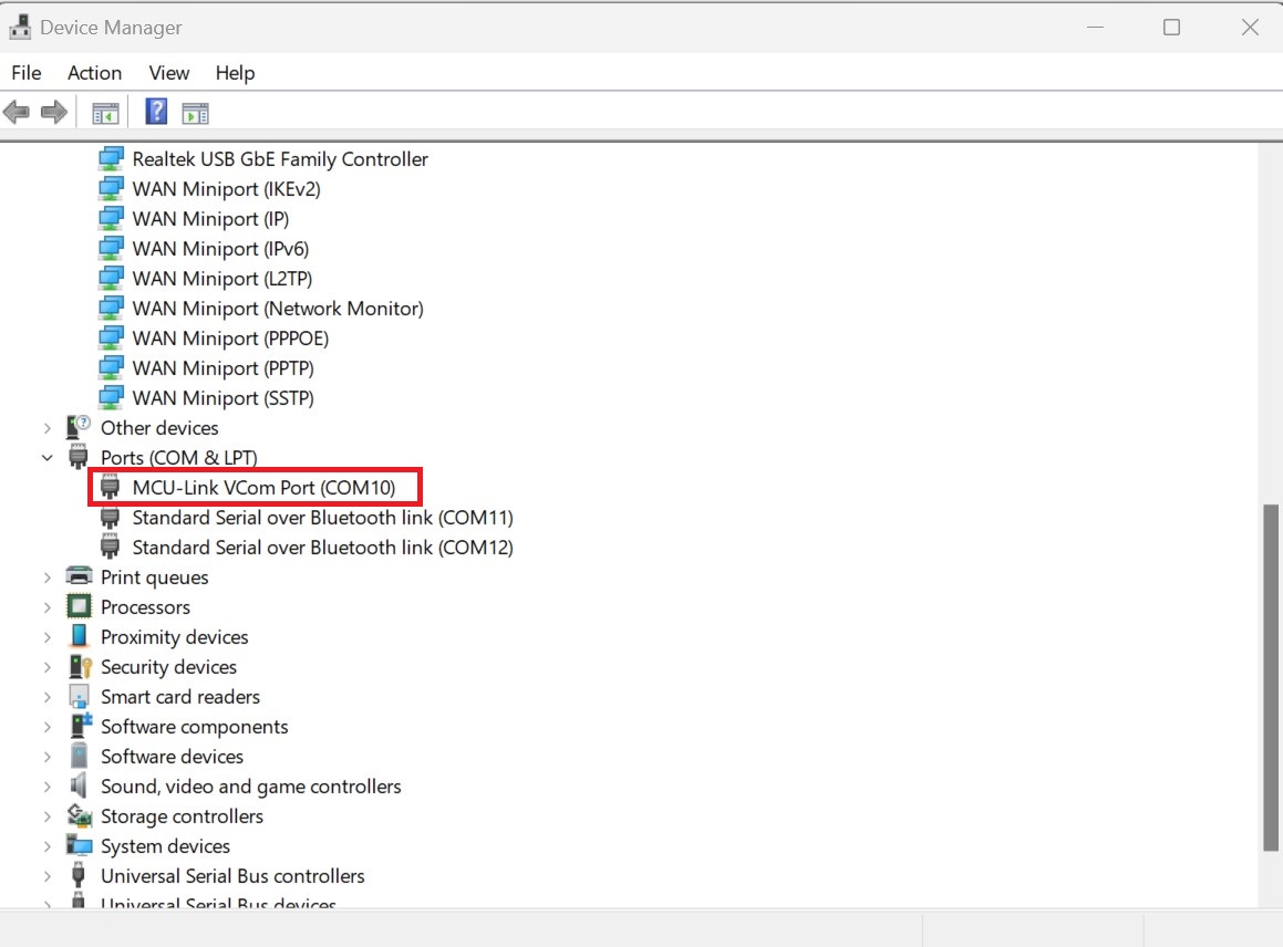 - 用户需要通过设备管理器连接主机 PC 和目标板之间的 USB 电缆后检查 COM 端口。