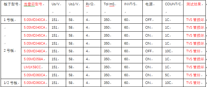 注:选雷卯5.0SMDJ60CA可以通过4Ω 350ms 10次抛负载测试;
